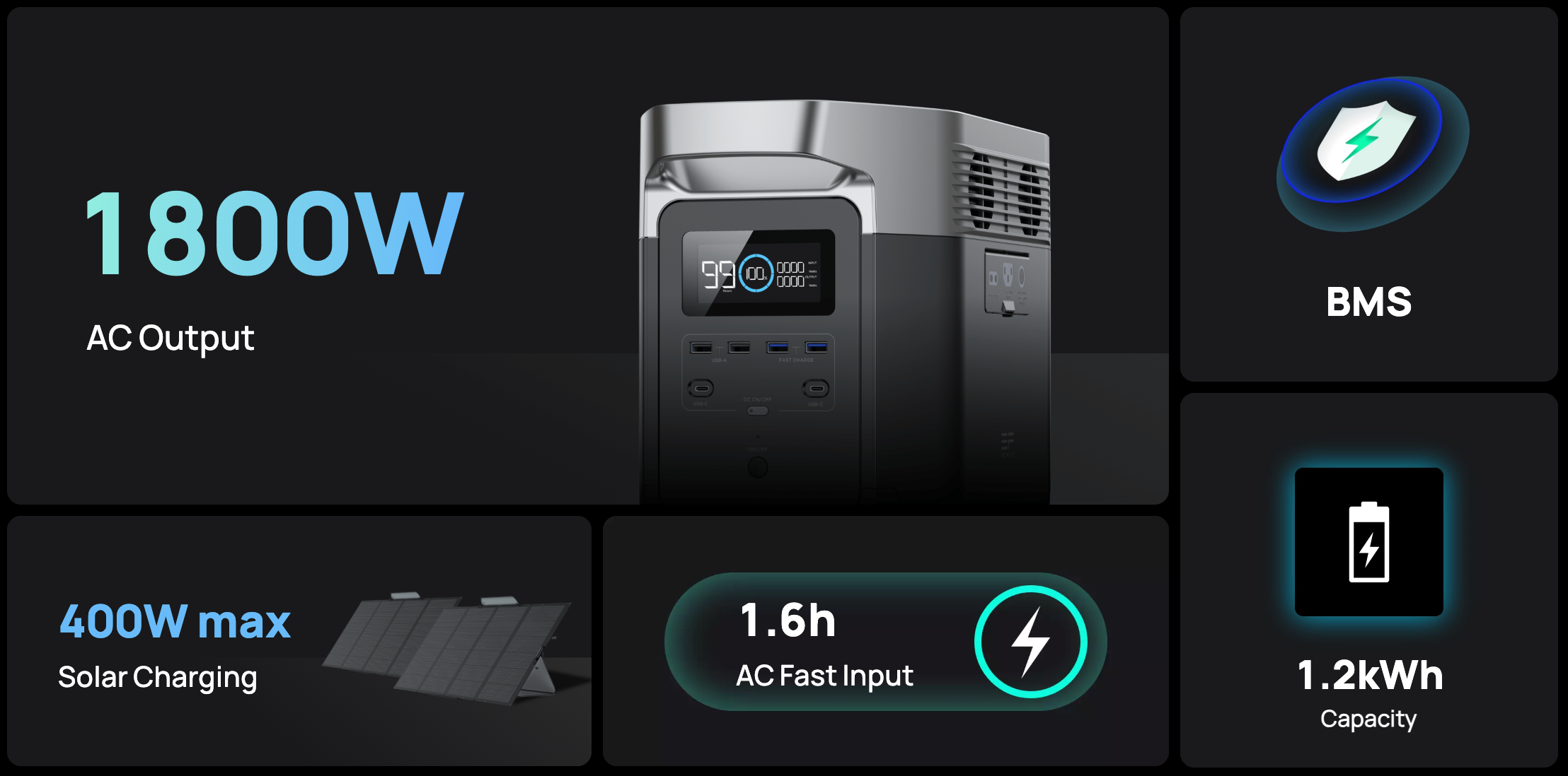 - 6x AC Outlets (Total 1800W) & 1260Wh capacity
